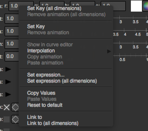 Note that for multi-dimensional parameters such as ColorParam, the Set Expression… entry will only set an expression for the right-clicked dimension.