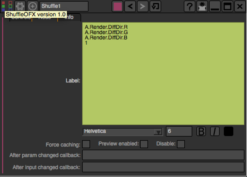 For instance, we may want to have on the shuffle node, the values of the output RGBA channels so we don’t have to open the settings panel to understand what the node is doing.