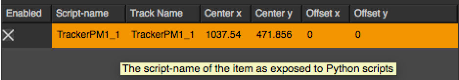In the settings panel of a tracker node, the script-name of an item is visible in the tooltip when hovering the mouse on the label column.