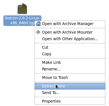 When the file has been downloaded, extract the file. This can be done in your file browser, usually just right-click and select ‘Extract Here’.