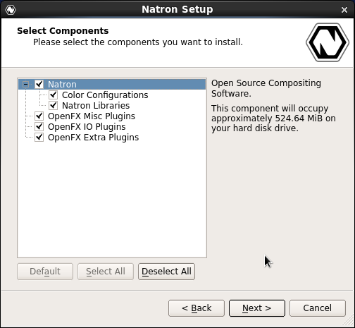 Click ‘Next’ to start the installation, you first option is where to install Natron. Usually the default location is good enough. If you select a installation path outside your home directory you will need to supply the root (administrator) password before you can continue.