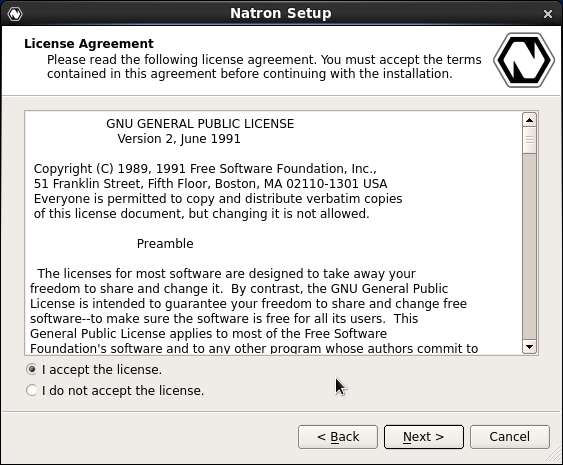 Then comes the standard license agreement, Natron and it’s plug-ins are licensed under the GPL version 2. You can read more about the licenses for each component included in Natron after installation (in Help=>About).