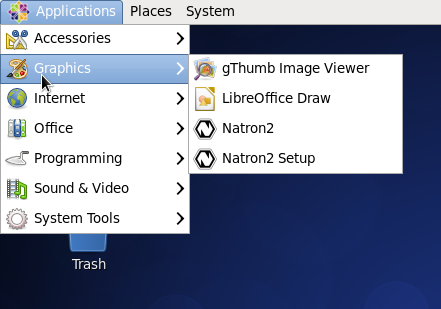 Natron can be started from the desktop menu (under Graphics) or by executing the ‘Natron’ file in the folder you installed Natron.