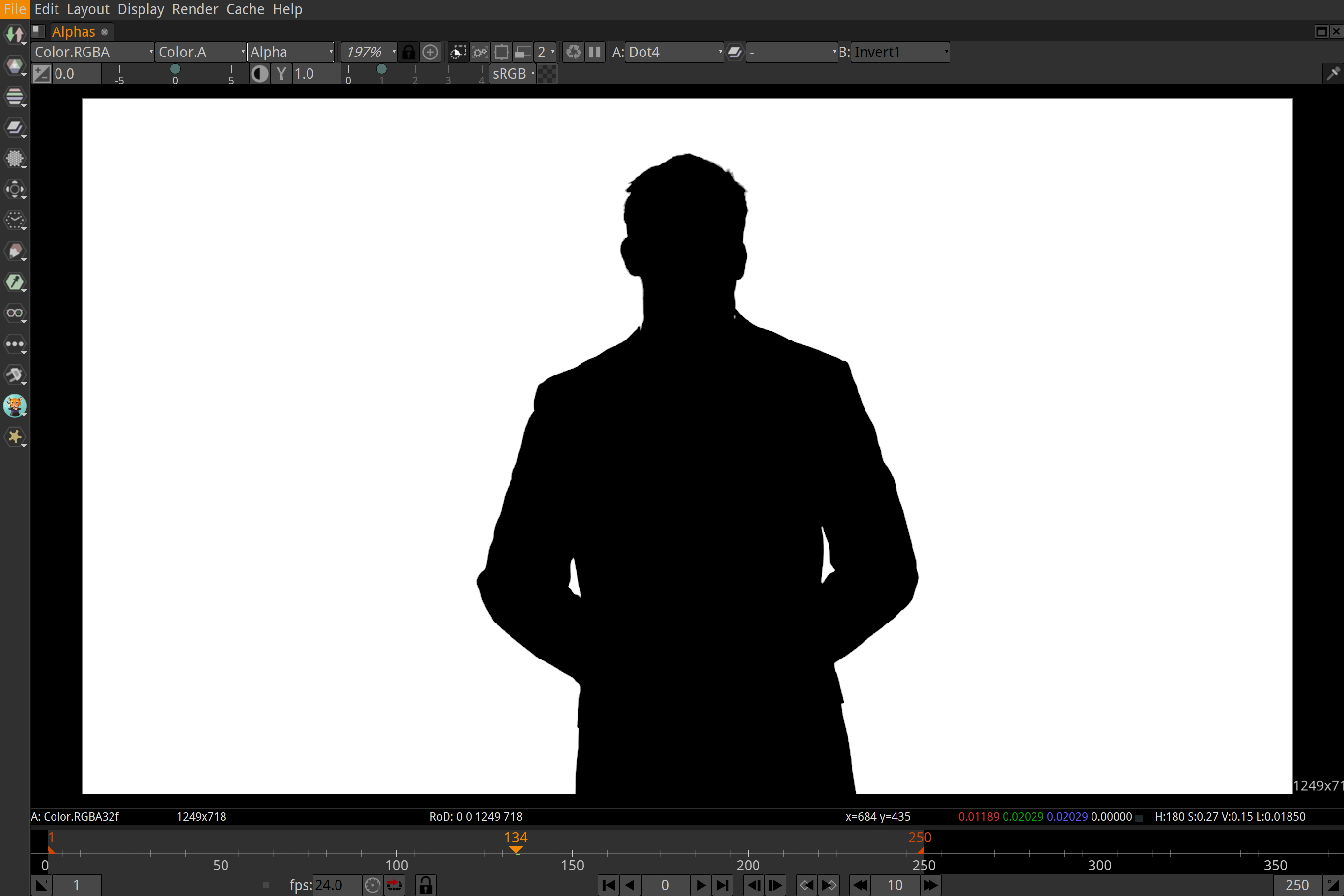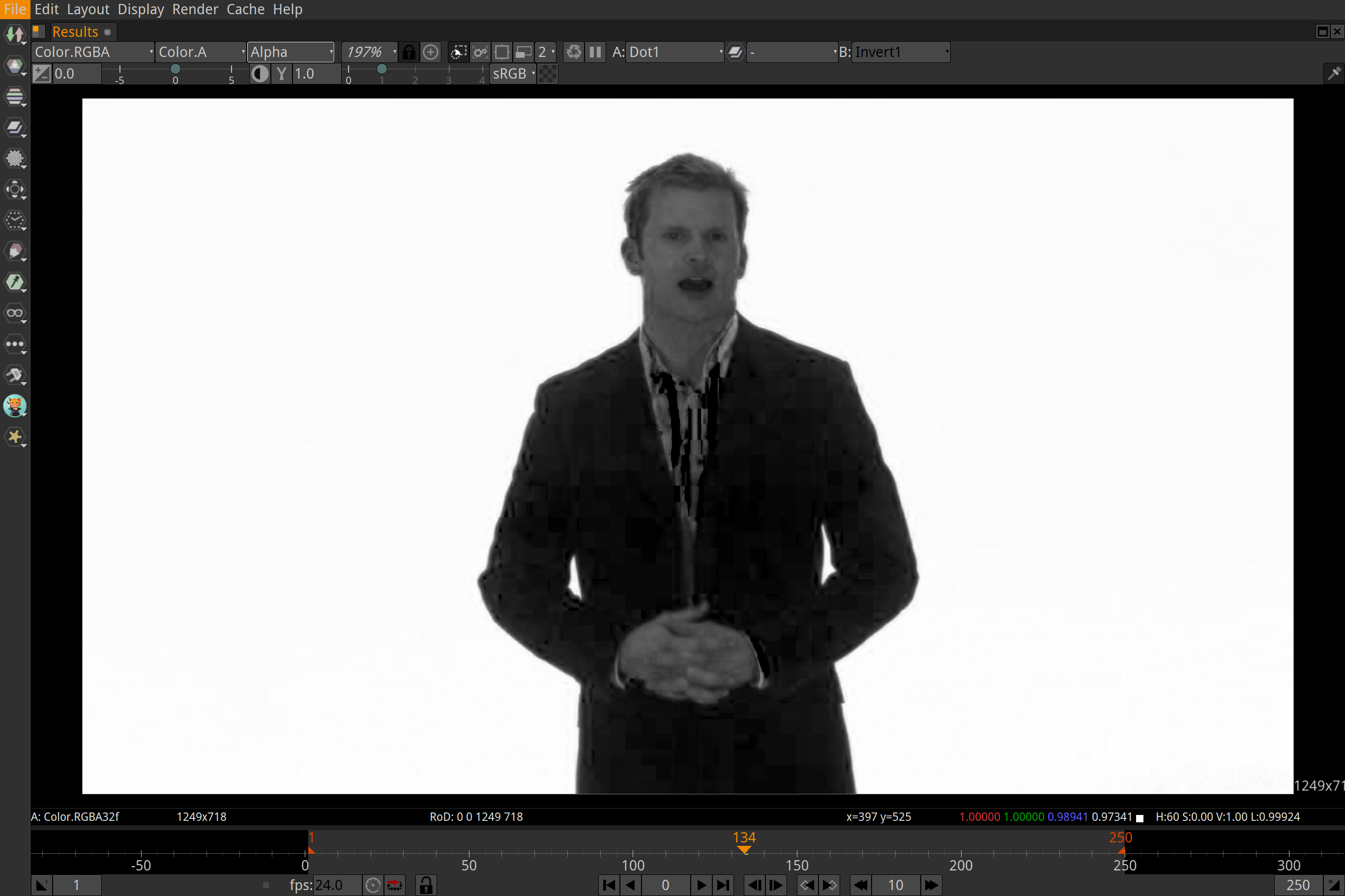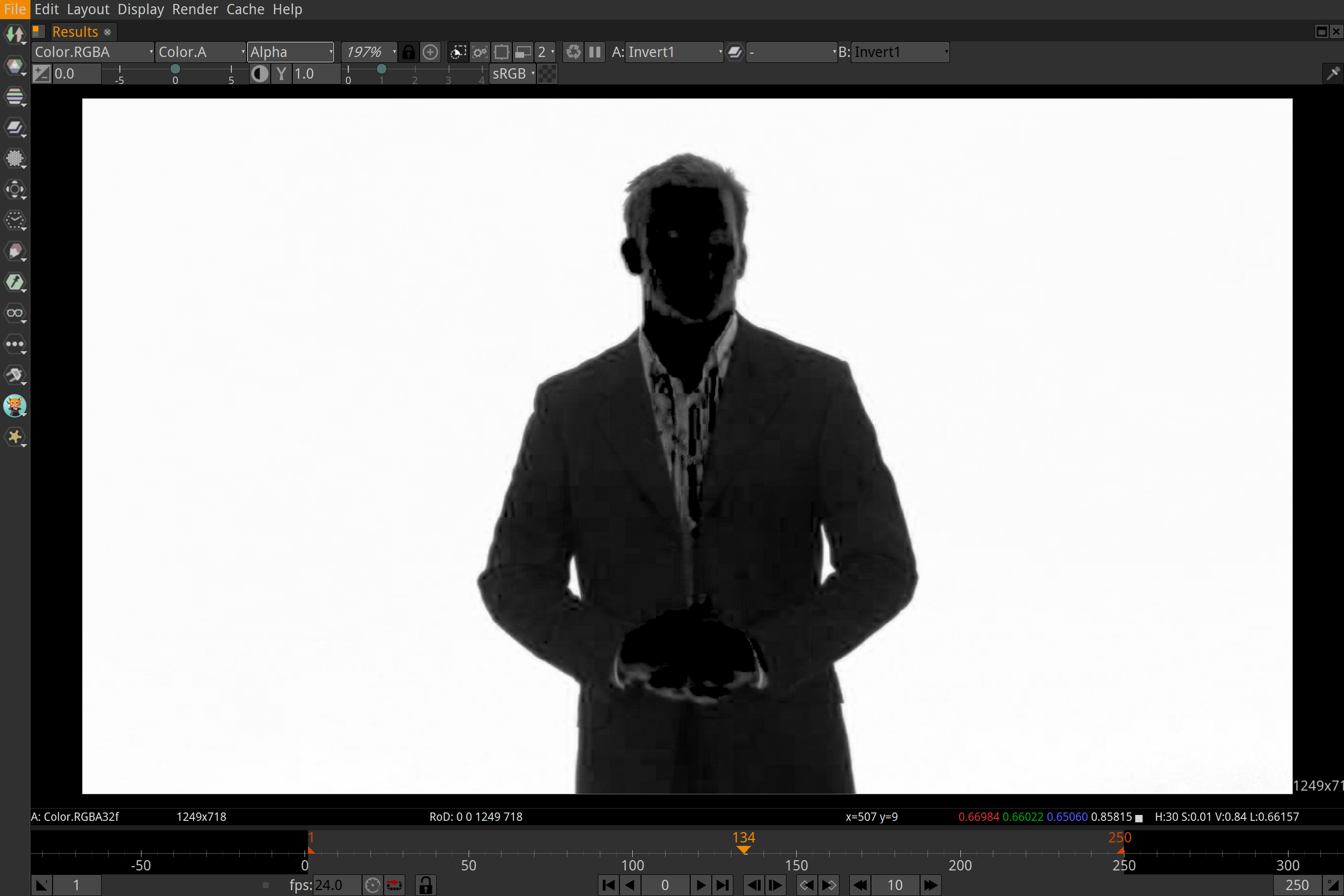 Now just selecting the Shuffle Spillmatte to Alpha feature is not some magic trick and you get a perfect matte, not by a long shot. For a matter a fact its not for any of them. Attached are example of the nodes in their default state before the scaling process begins. The first image is the Ip_ChillSpill default matte output and the second in the ColorSuppression default matte output. It looks like if I was trying to use the HSVTool Node to pull a Saturation or Brightness Key. You can read more about that in my HSVTool node tutorial. I used a very underated and under used node amongst beginners called the ColorLookup Node. You can be very familiar with the node if you have used Photoshop or Gimp’s curve tool.